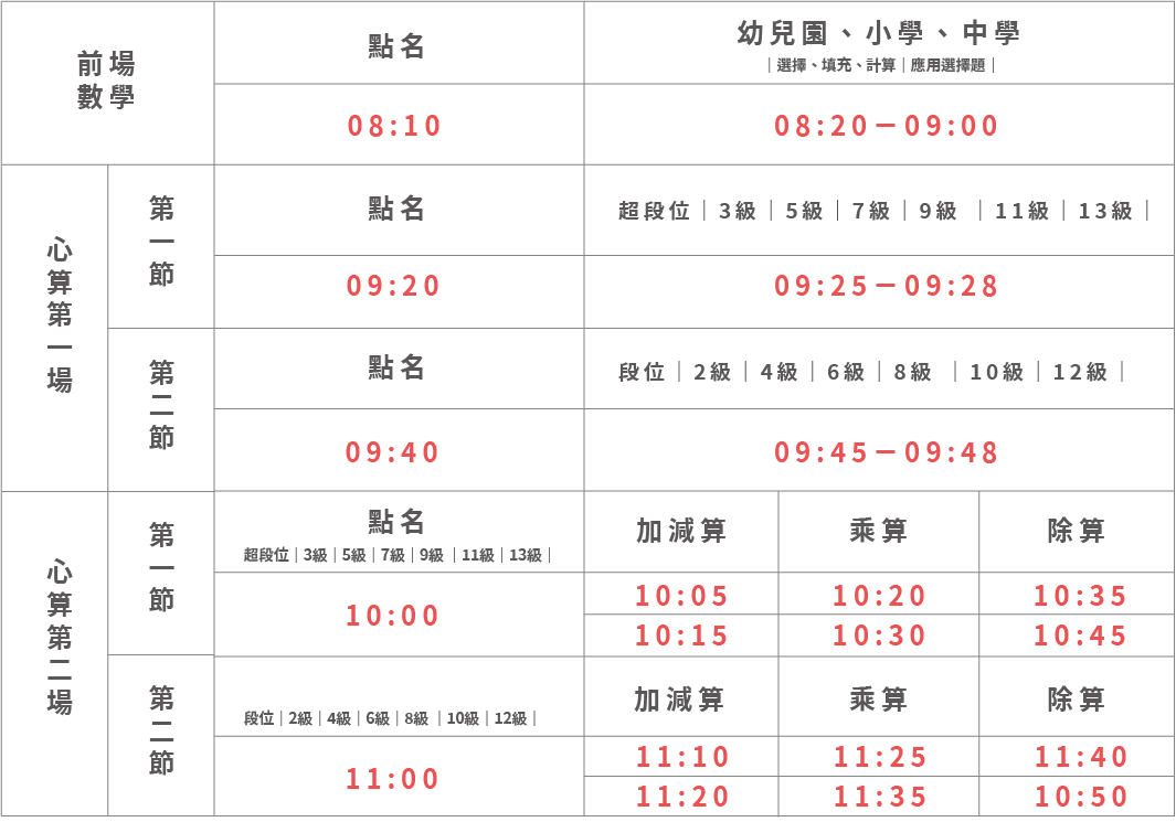 測驗組別:1.數學 :幼兒園中、大班,小學及中學各年級